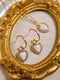 - Material: Copper plated with 14k gold, zircon, faux pearl